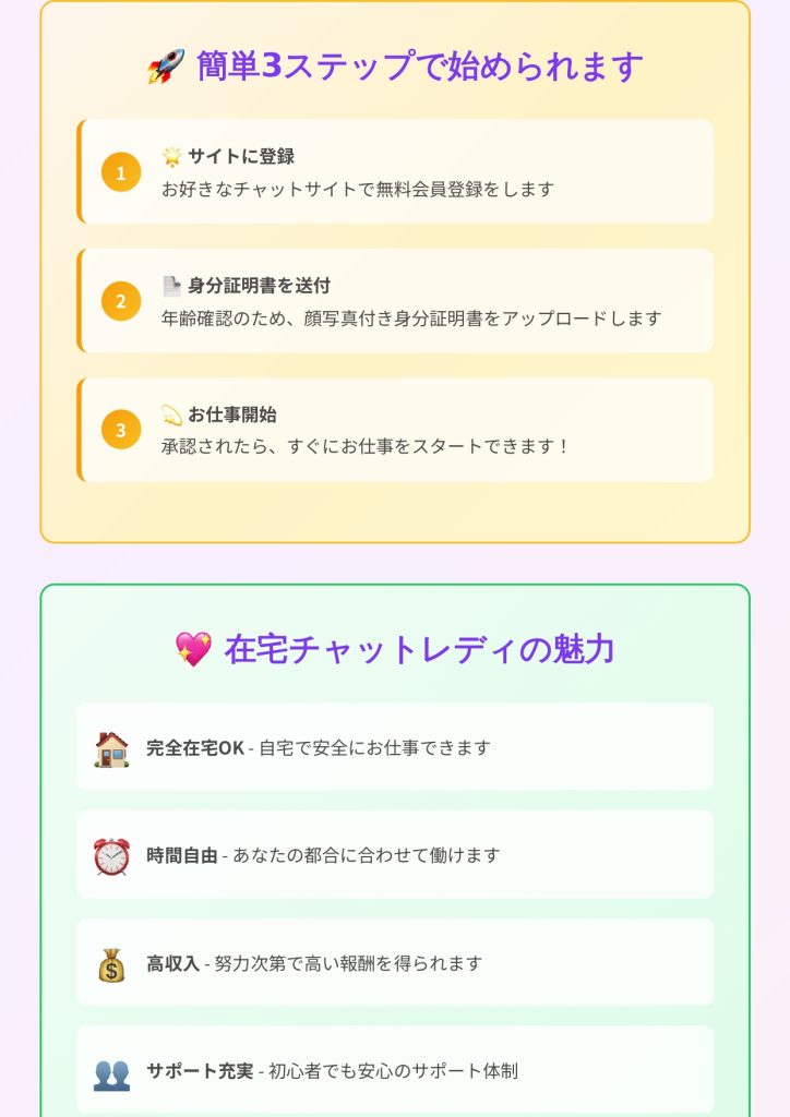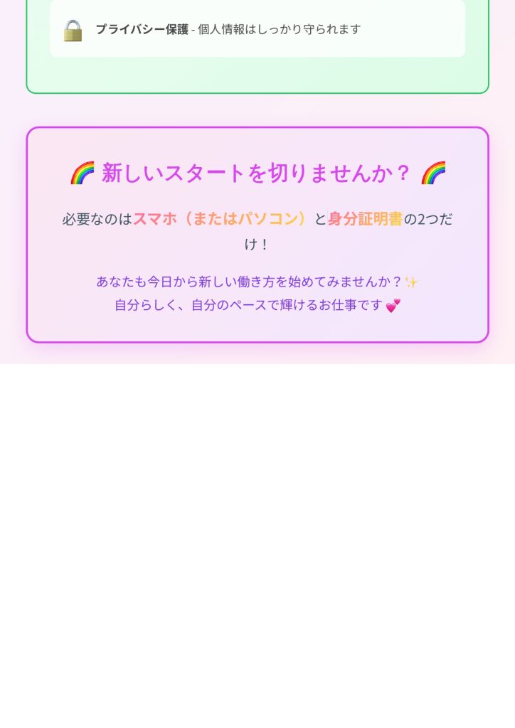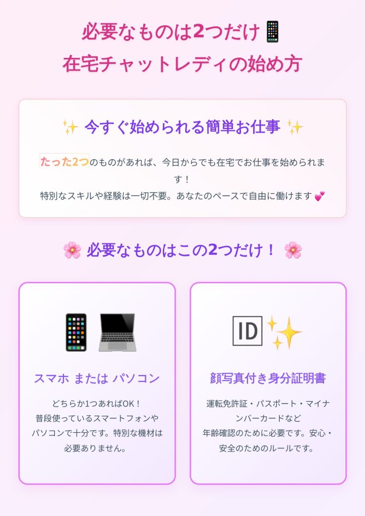 必要なものは2つだけ📱在宅チャットレディの始め方 2025 11/10 Uncategorized November 10, 2025 Uncategorized よかったらシェアしてね! URLをコピーしました! URLをコピーしました! チャットレディを始める前に知っておくべき5つのこと 「カメラ映えメイクのコツ💄5分で変わる印象術」 この記事を書いた人 hirata 関連記事 自分らしく稼ぐ💪チャットレディで人生変わった話 November 19, 2025 「カメラ映えメイクのコツ💄5分で変わる印象術」 November 14, 2025 チャットレディを始める前に知っておくべき5つのこと November 9, 2025 Hello world! May 28, 2025 コメント コメントする コメントをキャンセルコメント ※ 名前 ※ メール ※ サイト 次回のコメントで使用するためブラウザーに自分の名前、メールアドレス、サイトを保存する。